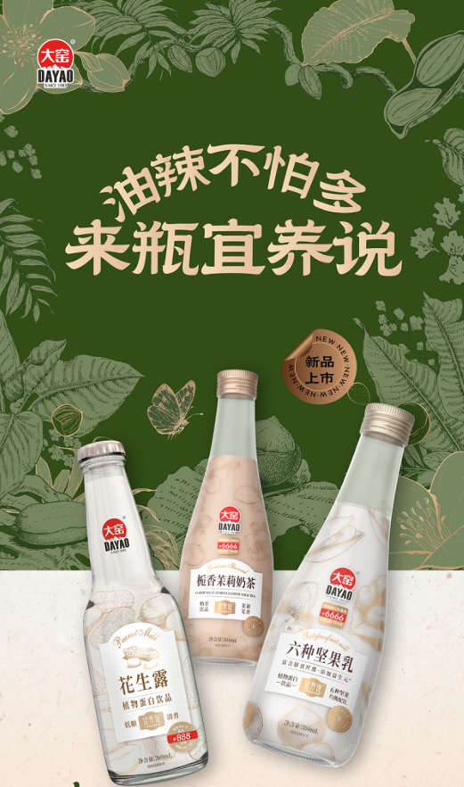 “宜养说”系列以“油辣不怕多,来瓶宜养说”卡位餐饮场景,六种坚果乳均衡配比膳食纤维与维生素E,低糖花生露添加真实花生,玻璃瓶包装兼顾高端感与锁鲜力;“醇香”系列通过石磨超细研磨、热灌杀菌工艺锁住营养,醇香花生露1.1g/100mL的蛋白质含量成为品质硬背书。亲民定价搭配七大智能生产基地的保障,让大窑实现“质价对等”而非“低价竞争”。